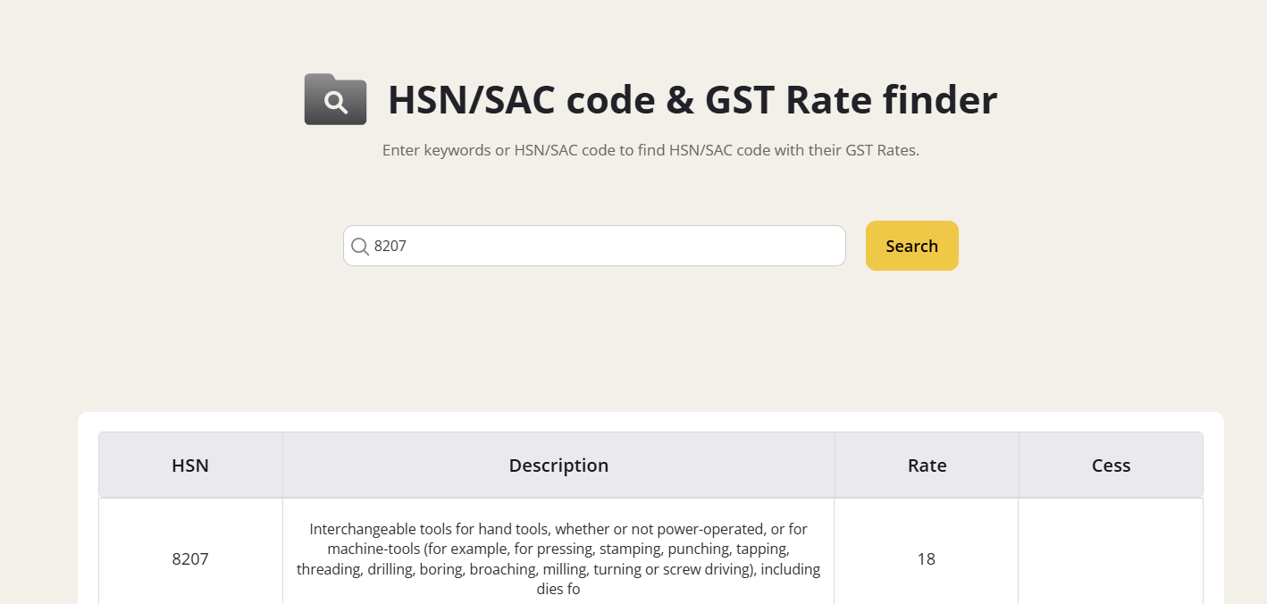 GST Rates and HSN Code 8207 for Interchangeable Tools