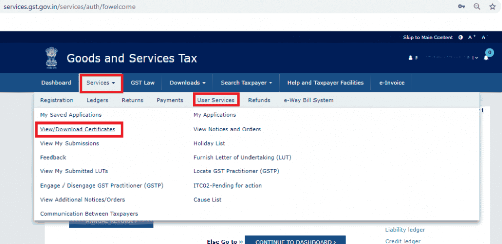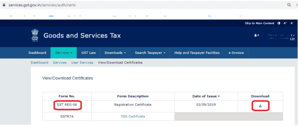 Certificate not visible? | If your GST registration is still under process, the certificate will not be available. Wait until your GST application is approved to download the certificate. |