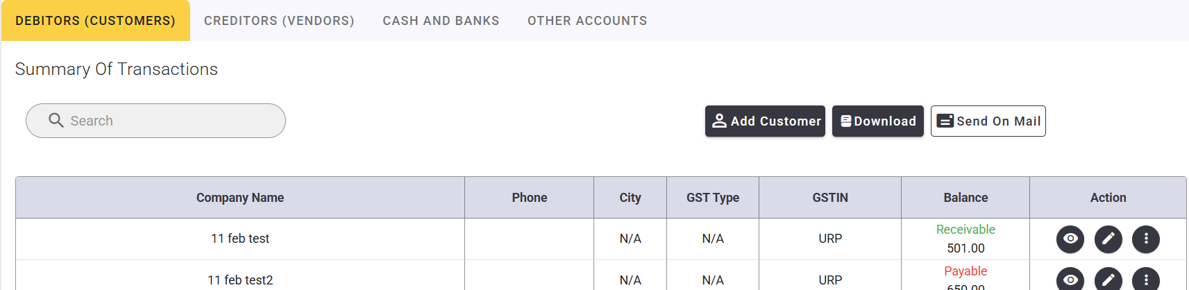 Every credit customer in your billing software should have a dedicated party or customer master record. This is their permanent profile in your system.